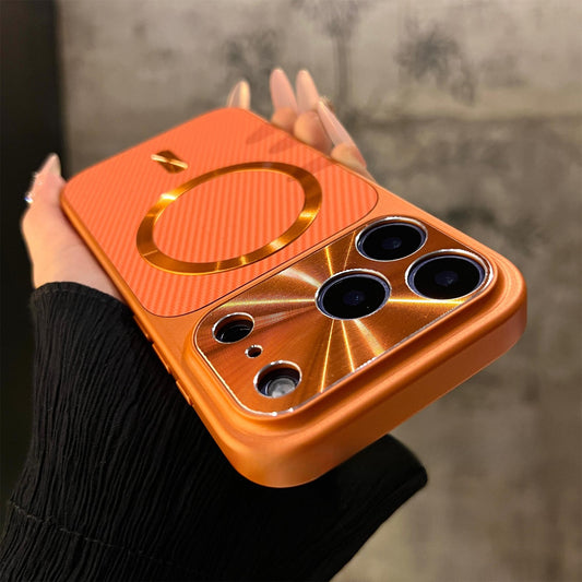 Carbon Fiber Backplate Magnetic CD-Pattern Lens Protection iPhone Case