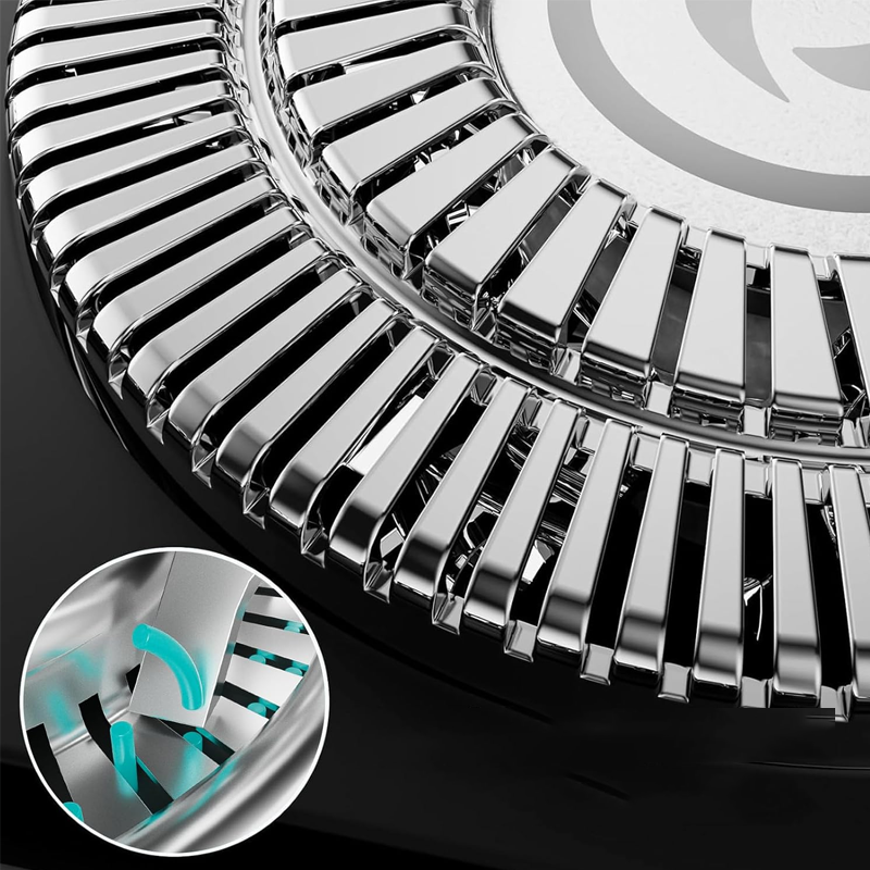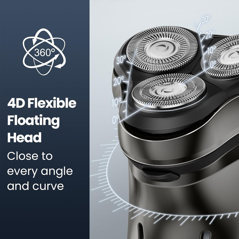 TRIPLE RING BLADE WITH SELF-SHARPENING TECHNOLOGY: Provides a precise shave with three rotating heads featuring self-sharpening blades that maintain sharpness, delivering a comfortable, smooth grooming experience every time.