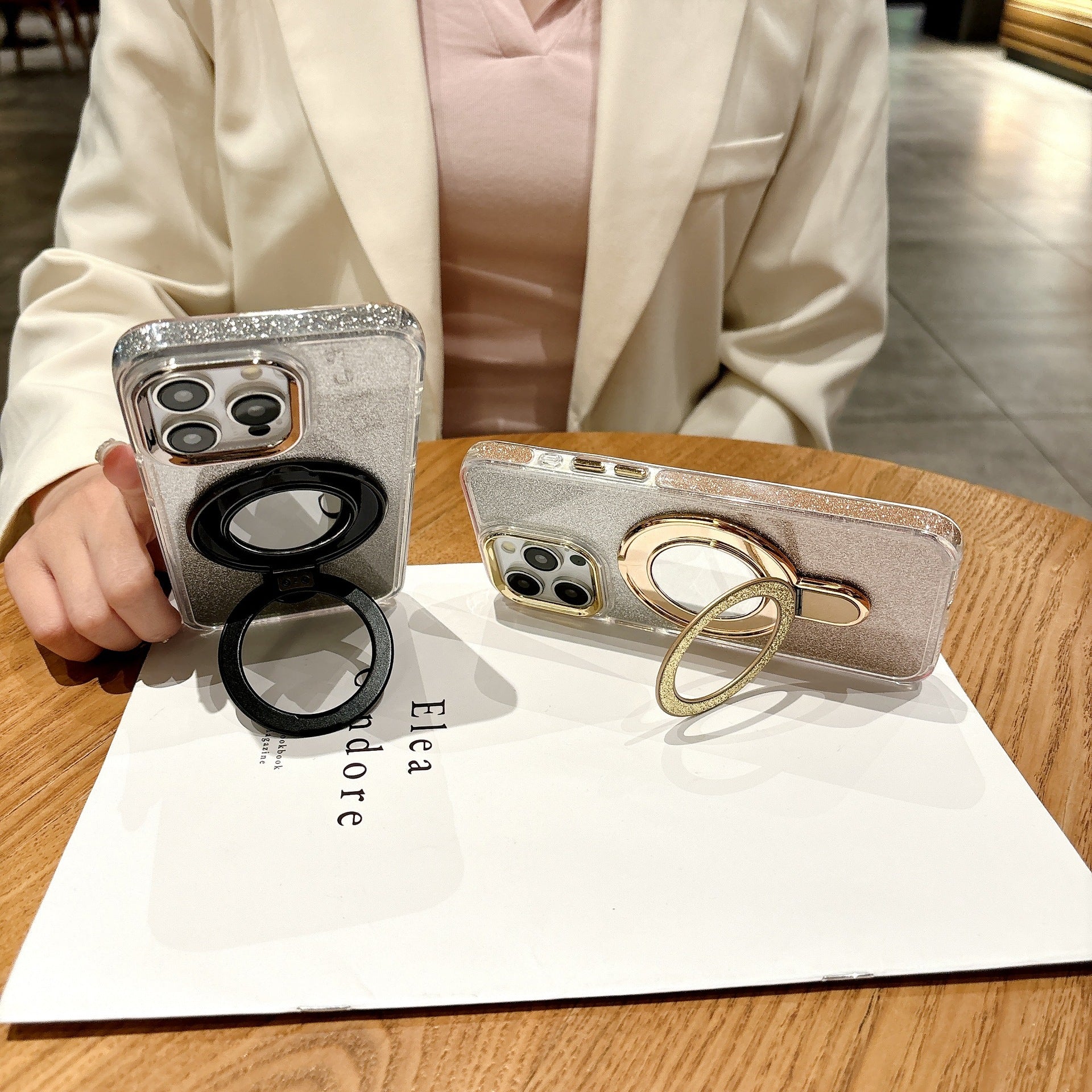 Equipped with Folding Stand and Make-up Mirror Glitter Case Cover for iPhone
