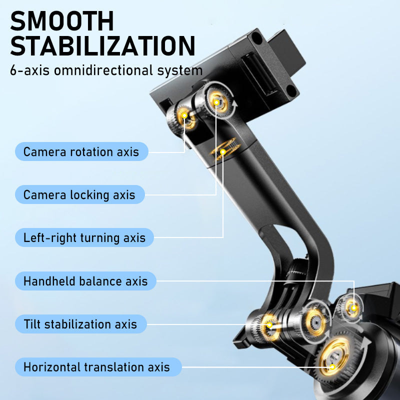 SIX-AXIS OMNIDIRECTIONAL STABILIZATION AND ADJUSTABLE HEIGHT: Tailor and adjust the height and angle of the tripod legs, while the six-axis stabilization system guarantees smooth and clear shots from any perspective.