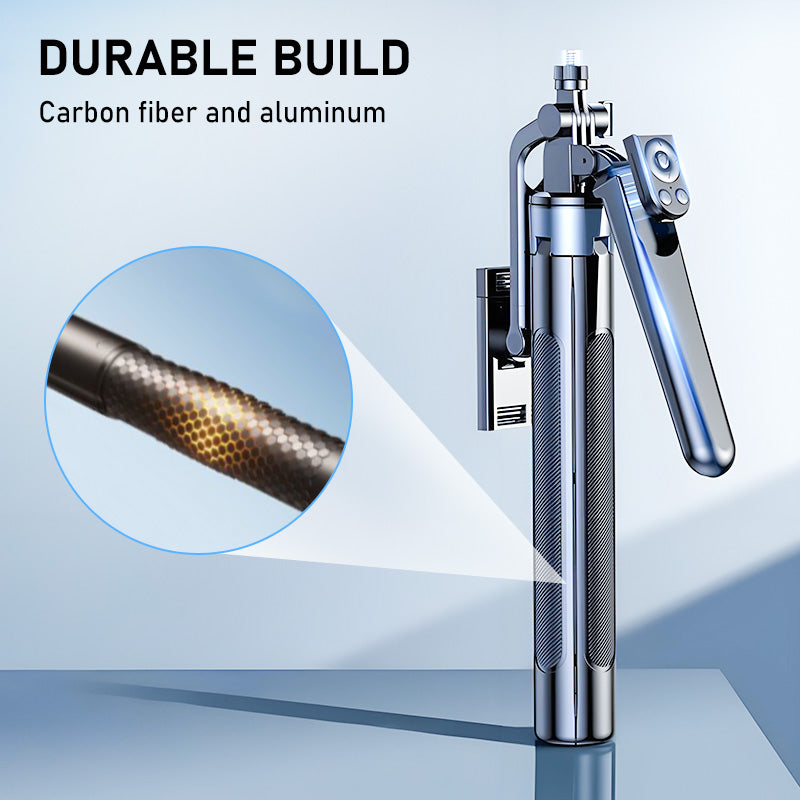 DURABLE CONSTRUCTION: Made from high-quality carbon fiber and aluminum materials, this selfie stick offers excellent strength and durability without compromising portability.