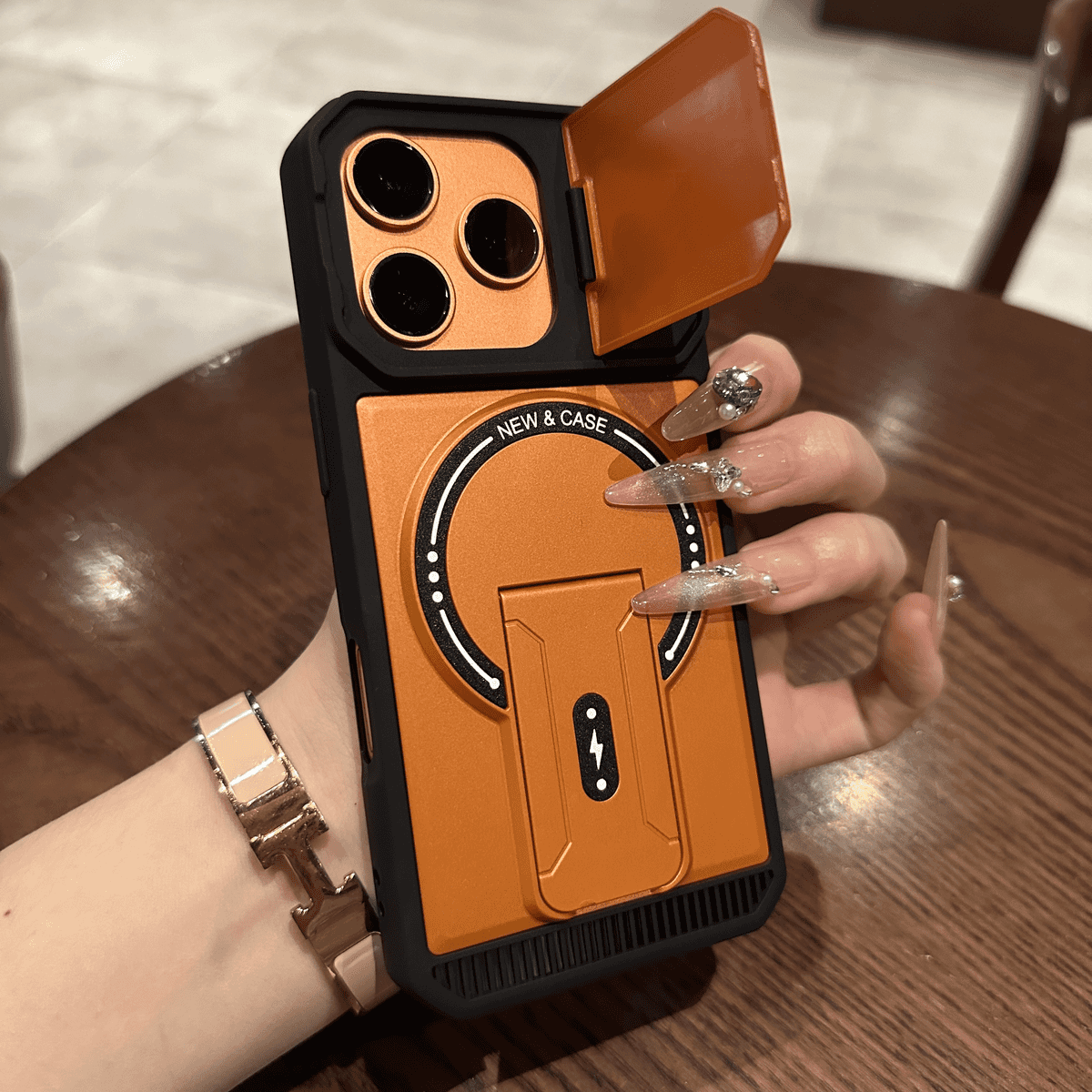 Hidden Dual-Bracket Cover-Style Folding Lens Protective Case for iPhone