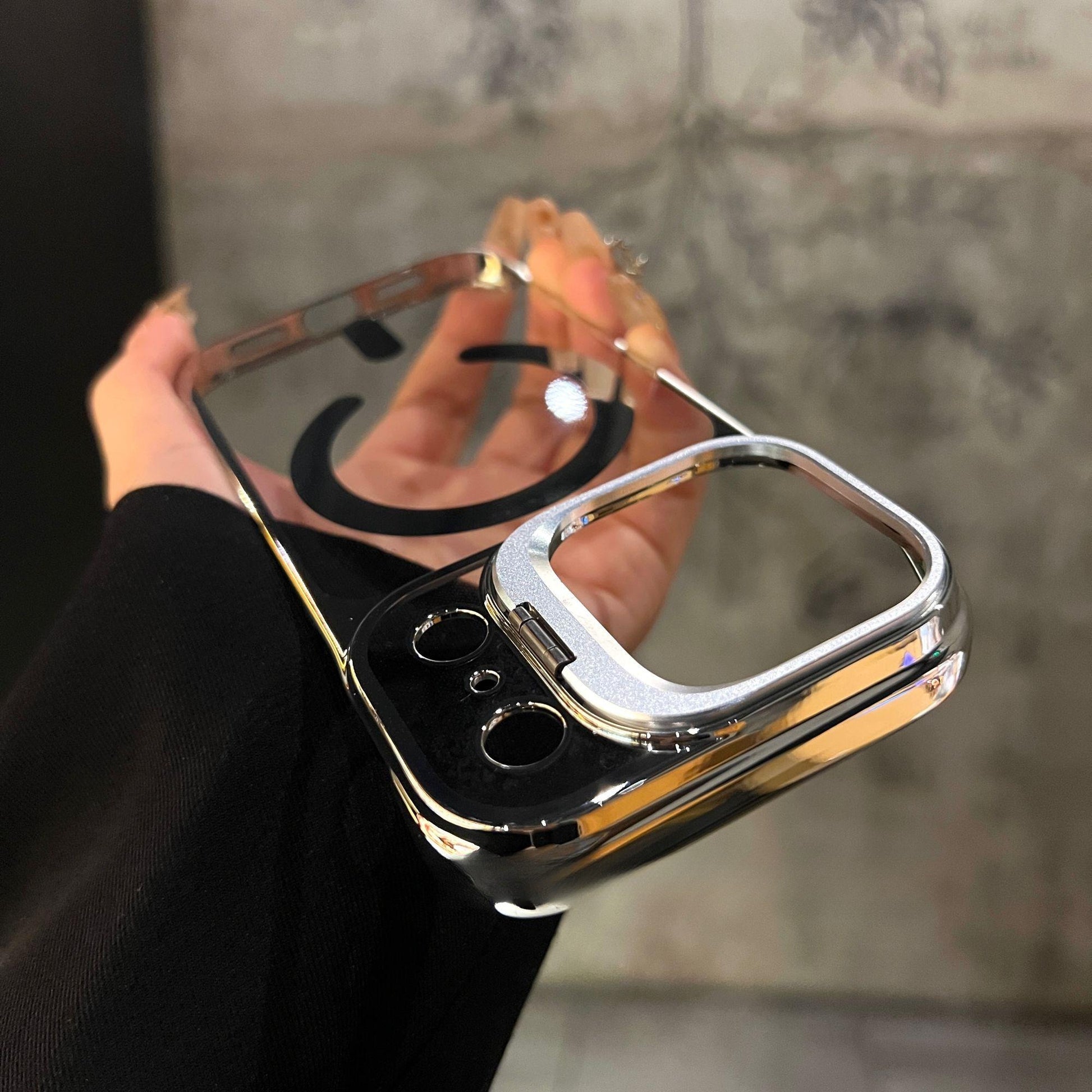 Semi-transparent metal lens folding frame protective Case for iPhone