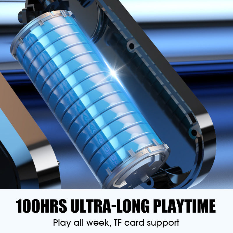 100HRS ULTRA-LONG PLAYTIME: Power through your week with up to 100 hours of playtime on a single charge. Even when the battery runs low, simply insert a TF card and continue enjoying your music — no phone needed!